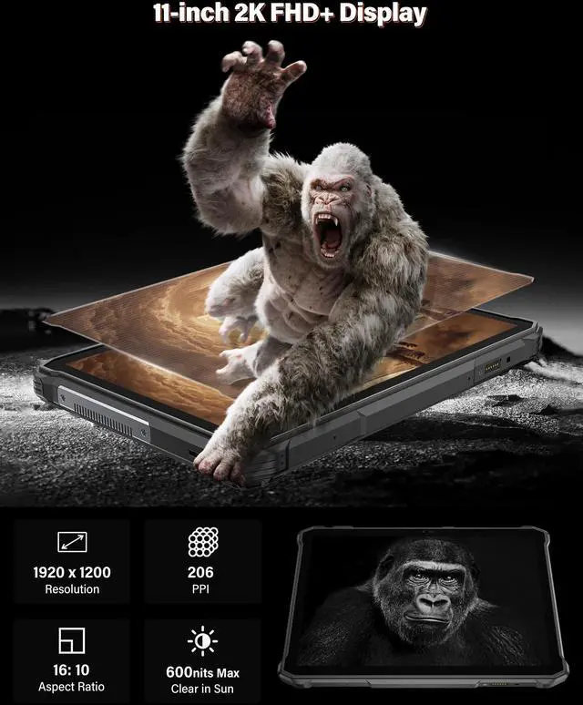 Capture stunning moments with improved in-app camera controls. ^^ MediaTek Dimensity 7400X 5GThe next-level Dimensity 7400X SoC, engineered with an advanced 4nm process and an octa-core CPU with up to 2.6GH z clock speed, takes your streaming, multitasking, and gameplay to the highest level, fluidly like never before. ^^ 11-inch FHD+ Display & IP68/69K & MIL-STD-810H ShieldWith boundless 11-inch FHD+ display, 1920*1200 Resolution, 206 PPI, 600nits brightness, letting you see more, work smarter, and fully enjoy every detail. Plus Corning Gorilla Glass screen, Certified by MIL-STD-810H, it withstands drops, shocks and the toughest conditions with ease. ^^ Dual 64MP Rear Camera & 32MP Front CameraFeatures the highest resolution of 64MP night vision camera, coupled with 4 infrared LEDs, revealing the finest details and hidden hazards invisible to the naked eye in absolute darkness. Armor Pad 5 Ultra also employs the 64MP Sony IMX682 as its lead camera, the pictures it takes are sharp and clear with zooming in critical details. ^^ Dual Versatile LED Lights & Dual Warning LightsPArmor Pad 5 Ultra boasts two Versatile LED Lights, each light features a max brightness of 1000 lumens, you can switch between warm or white light to suit any situation.
