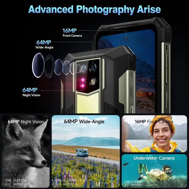 ^^ 22000mAh Battery: With unprecedented capacity of 22000mAh, Armor 24 redefines what it means to stay connected, explore, and conquer the great outdoors. Stay powered up for about 7 days without bother of constantly searching for charging points or running out of battery during outdoor adventures. 66W rapid charge technology takes only 130 minutes to reach a full charging. Meanwhile, the rugged phone designed with OTG function doesn't only work as a unlocked rugged android phones, also work as a power bank in emergency situations. ^^ 4G