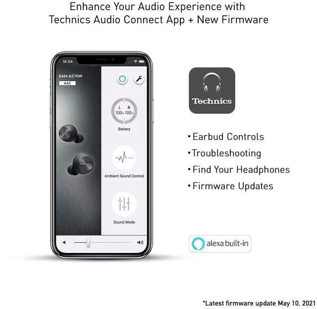 The large 10mm driver and graphene-coated diaphragm deliver rich expansive sound with smooth detailed highs and tight, articulate bass. This allows you to cut the cord without the compromise. The patent-pending antenna design provides a powerful connection thats less sensitive to interference, even in crowded rooms. In addition, beamforming microphones work to isolate voice from background noise. Never miss a moment or opportunity. Technics timeless design philosophy is in every detailclean lines, high-grade material and no superficial elements. The rounded body is built for long use and IPX4 technology ensures durability even in the sweatiest runs or unexpected drizzles.