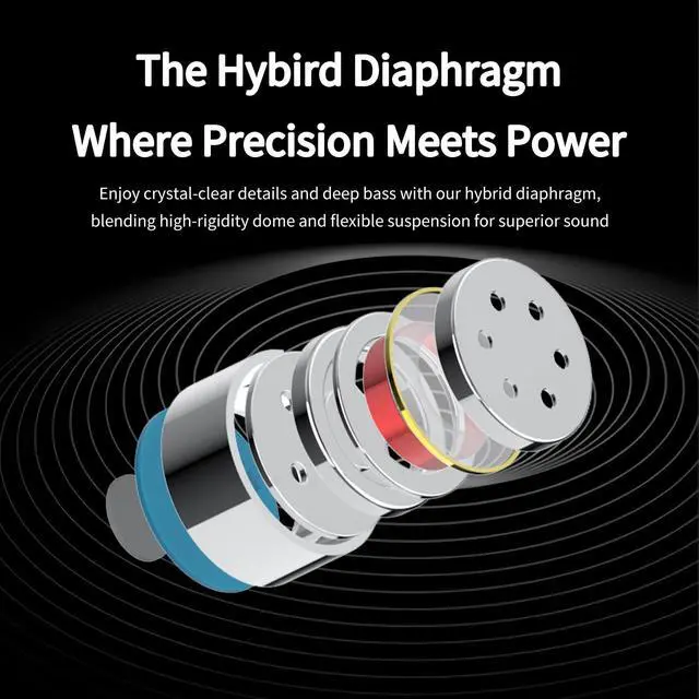 Pro-Grade Sound & Gaming Precision with Dual-Magnetic DriversUnlock professional-grade audio with Titan Xs dual-magnetic dynamic driver. Designed for both immersive music experiences and competitive gaming, it delivers deep bass, crystal-clear highs, and lightning-fast response. Whether you're enjoying music or hunting for footsteps in FPS games, this IEM ensures pinpoint accuracy and powerful sound for any occasion. ^^ Hybrid Diaphragm for Unmatched Clarity & DetailHear every note with exceptional clarity thanks to Titan Xs advanced hybrid diaphragm. The rigid dome ensures fast, accurate treble, while the flexible surround delivers punchy bass without losing mids.