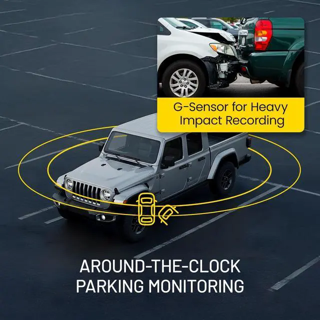 ^^ /: Time-lapse parking monitoring continuously records your vehicles surroundings while conserving storage. A built-in G-sensor detects impacts and automatically locks footage as evidence, while the included GPS antenna logs direction, speed, and location for critical driving data in case of an accident.