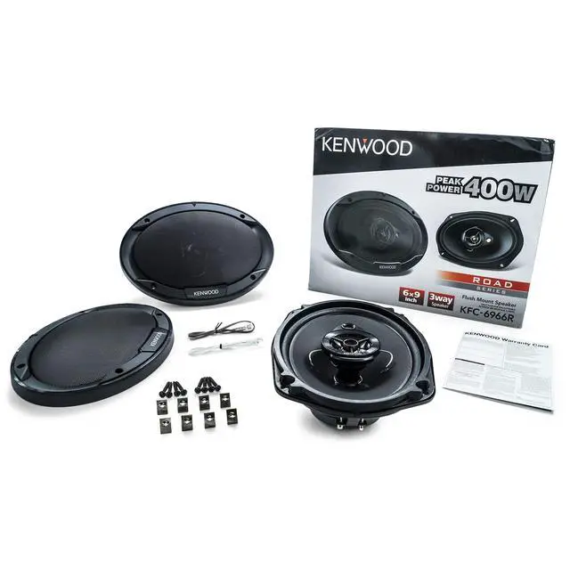 A TREAT FOR AUDIOPHILES: KENWOOD KFC-6966R 6"x9" Road Series 3-Way coaxial car speakers with 400W peak power, 4-ohm impedance, cloth woofer cones, electro-dynamic tweeters, and sharp-looking grilles ensure high quality music that sounds like the original ^^