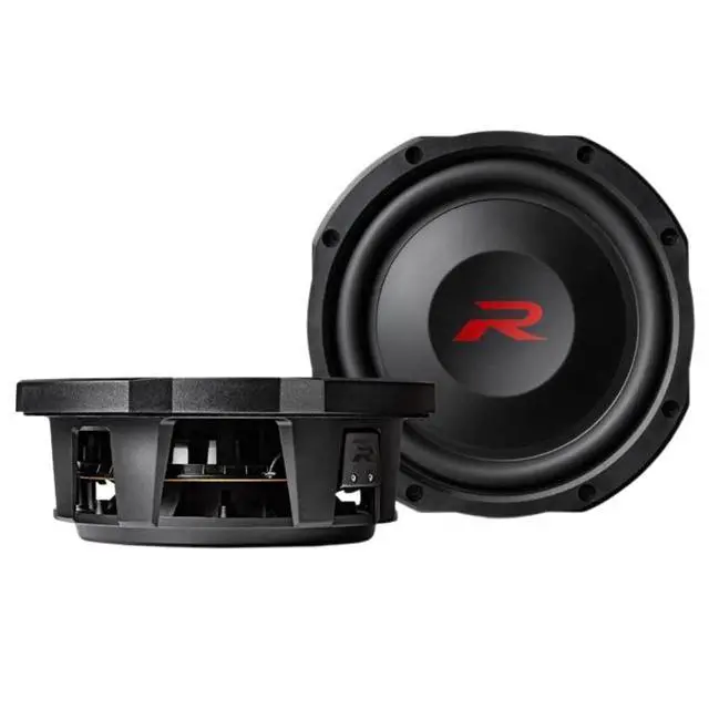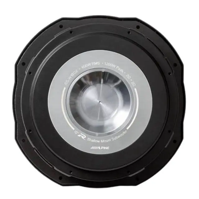Alpine's RS-W10D2 10-inch R-Series Shallow Subwoofer with Dual 2-Ohm Voice Coils. With an ultra-shallow subwoofer design and powerful sound output, the R-Series Shallow Subwoofers give you the best of both worlds in size and sound. ^^ A lightweight yet rigid aluminum dust cap allows the R-Series Shallow Subwoofer to transition sound quickly with minimal distortion and project the bass off the surface of the speaker for hard-hitting yet smooth bass performance. ^^ Alpines Gen2 DD-Linear Magnetic Circuit technology, a compact and efficient dual-gap voice coil structure, allows for better control over the motor, resulting in lower distortion and precise bass control.