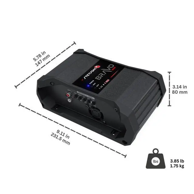 Stetsom Bravo BASS 1200 1 Ohm - Mono Car Amplifier, 1200.1 1.2K Watts RMS, Monoblock, 1 Stable Car Audio, HD Sound Quality, Crossover & Bass Boost, Car Stereo Speaker Subwoofer MD, Smart Coolers