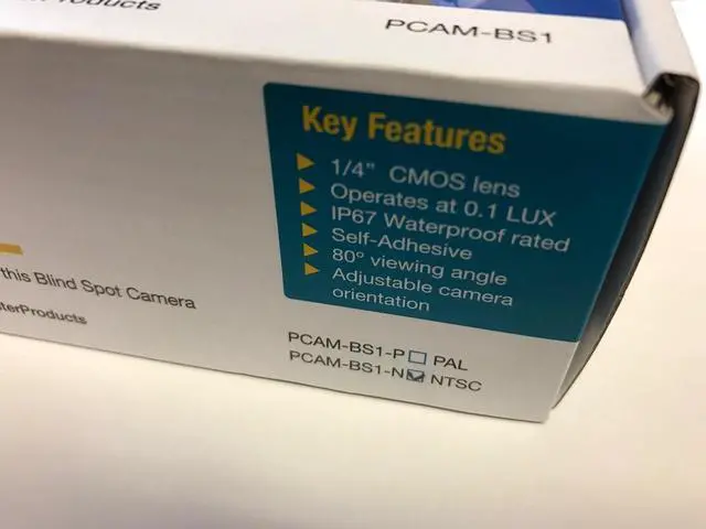 Key Features: 1/4" CMOS sensor Operates at 0.1 LUX IP67 water/debris proof rated Self-adhesive 80 viewing angl