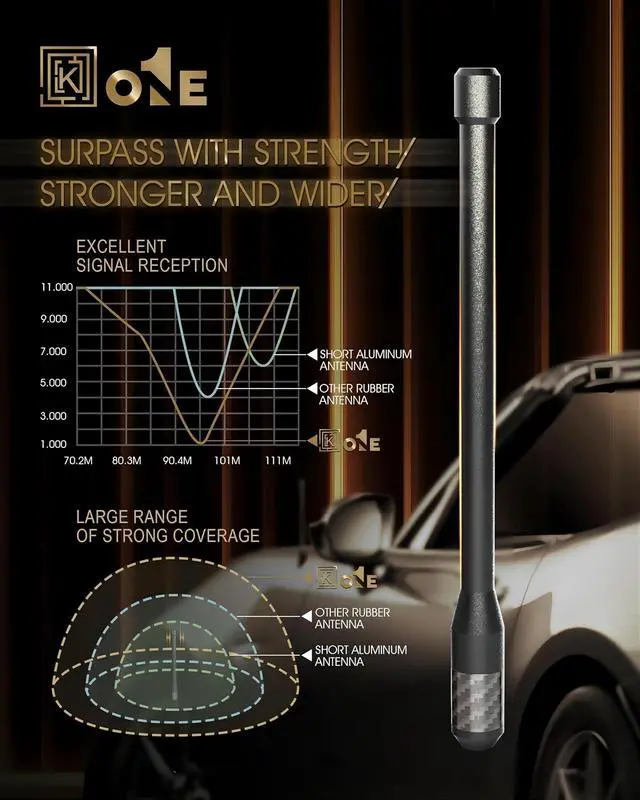 NOTE: CONFIRM YOUR VEHICLE IN THE DROP DOWN BOX ABOVE TO ENSURE FITMEN ^^ UNMATCHED RECEPTION ^^ KEYO1E Sturdy Rubber antenna gives superior signal strength. The performs effective as the OEM antenna when you are driving. Will not negatively affect your navigation systems, XM or any satellite service of that sort. So you can get a short antenna without worrying about affecting other performance. ^^ Good Quality-Sturdy MaterialSturdy Carbon Fiber on the bottom looks very cool and ensures no signal loss. Its carbon fiber bottom keeps the antenna securely latched to the existing antenna mount no matter what. Premium flexible material which allows going through car washers and doesn't bend much or flop around when doing down the highway. ^^ CAR WASH-BEST ^^ Take it thru the car wash with no worries. KEYO1E Low Profile 7 9/10" high rubber antenna replaces your OEM long metal shaft antenna. The flexible structure of this antenna makes it withstand the test of car washing. So you can leave it installed during automatic car washes. ^^ BUILT TO LAST FOREVER ^^ Install KEYO1E Rubber Antenna get a stylish looking. KEYO1E antenna is flexible and can comfortably tilt side to side without any damage incurred to the antenna base or connection point.
