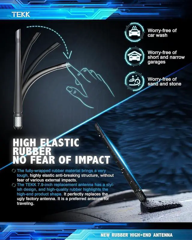 Compass ^^ NOTE: CONFIRM YOUR VEHICLE IN THE DROP DOWN BOX ABOVE TO ENSURE FITMENT ^^ UNMATCHED AM/FM RECEPTION ^^ TEKK Sturdy rubber antenna for superior AM/FM reception. Picks up AM/FM signals in the city with minimum skipping. Moreover, it doesn't interfere with your navigation systems, or XM radio, or any satellite service of that sort. So, you can get a short antenna without having to worry about affecting other performances ^^ SUPERIOR FLEXIBLE MATERIAL ^^ Strong carbon fiber bottom ensures no loss of signal. Its carbon fiber bottom keeps the antenna securely latched to the existing antenna mount no matter what. Premium rubber construction for enhanced weather resistance, can withstand high temperatures in summer. No tools are needed to install the antenna. It takes only a minute to install ^^ CAR WASH PROOF ^^ TEKK flexible 7 9/10" high rubber antenna is carwash-best. Optimized short antenna replacement maintains a low profile. Instead of a towering stock antenna, a short is comparatively a lot better to look at, and it elevates the visual aesthetics of your ride ^^ PROMISED PRODUCT QUALITY ^^ TEKK antenna is flexible and can comfortably tilt side to side without any damage incurred to the antenna base or connection point.
