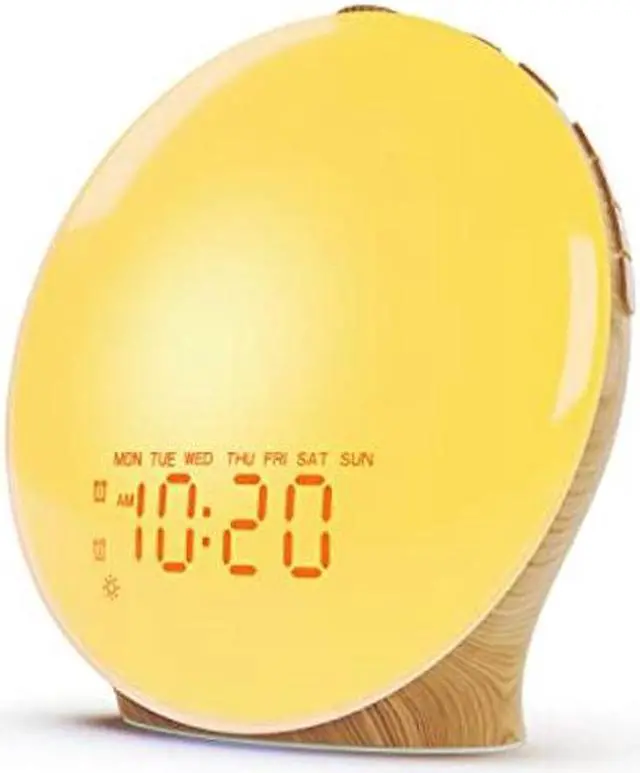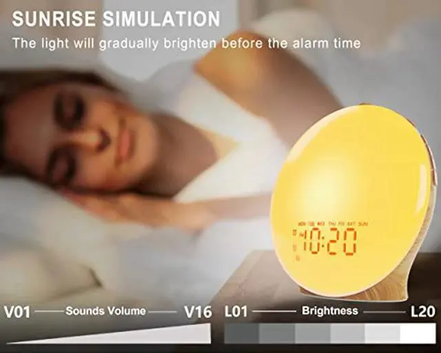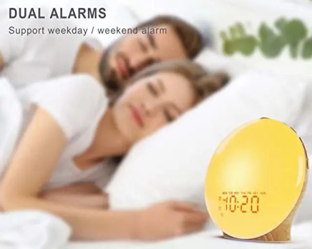 Full Screen LED Display Panel - This sunrise alarm clock truly achieves full screen display. Most of the similar products on the market can not achieve the full display effect. This light alarm clock uses the latest digital technology to make the time display clearer and the light brighter and softer. Help you wake up more easily.