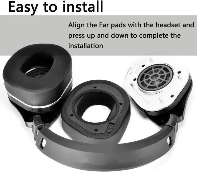 [ (EASY INSTALLING) ] Align the Ear pads with the headset and press up and down to complete the installation.
