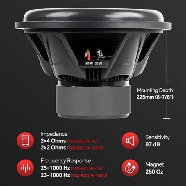 SUPERIOR PERFORMANCE: The TXX-BDC-IV-15 was designed and engineered with 4 magnets for strong power handling and increased voice coil ventilation for ultimate performance and endurance.