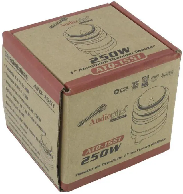 These ATQ1551 Tweeters are the brand new model replacing the ATQ1550 Audiopipe Tweeters. Take super loud to the next level with these midnight black edition Audiopipe ATQ1551 aluminum titanium super bullet tweeters with a 1 voice coil and an RMS power handling of 125 watts with a max power of 250 watts per tweeter. That is 500 Watts Max Power. This is what every bassheavy audio system needs if you want those voice conquering highs and exceptional sound quality.