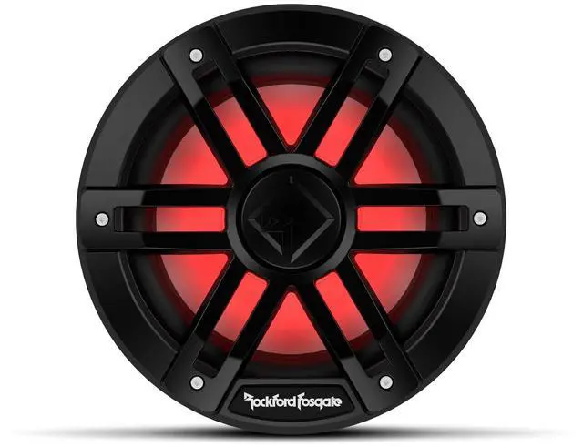 The M1D2-8B marine subwoofer has a power handling of 150 Watts RMS / 600 Watts Peak and connects with the Rockford Fosgate Color Optix Controller and RF Connect App (PMX-RGB sold separately), allowing you to customize your own color patterns
