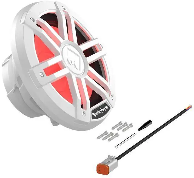 The M1D2-8 marine subwoofer has a power handling of 150 Watts RMS / 600 Watts Peak and connects with the Rockford Fosgate Color Optix Controller and RF Connect App (PMX-RGB sold separately), allowing you to customize your own color patterns
