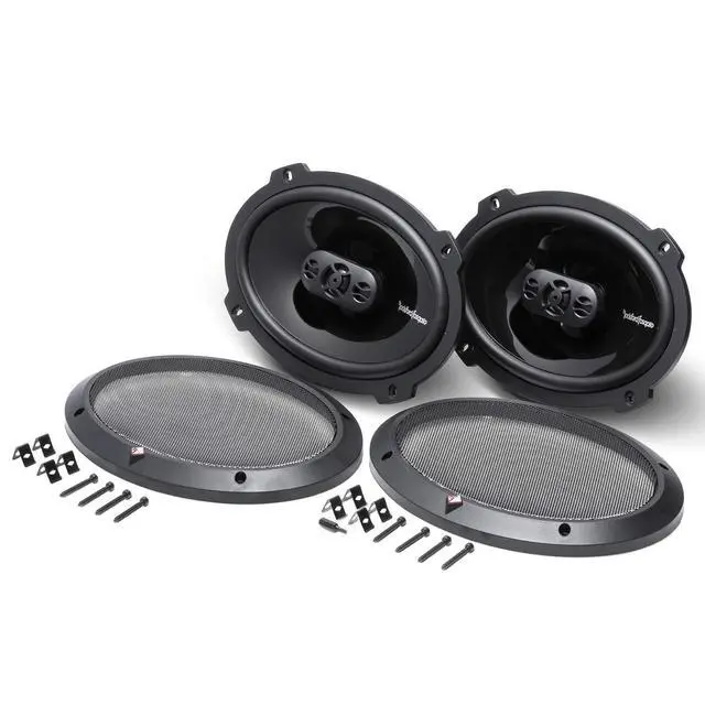 The Punch P1694 is an impressive 4-way full-range speaker designed for fanatics who need a high quality factory replacement in an easy to install package ^^ The P1694 6x9 4-Ohm black speakers come as a pair, have a power handling of 75 Watts RMS/150 Watts Max and include grilles, mounting hardware and OEM adapter plate ^^ Featuring a PEI dome tweeter with built-in crossover and injection molded mineral filled polypropylene cone with butyl rubber surround that provides high output and accurate frequency reproduction ^^ FlexFit basket design utilizes slots instead of single screw sized holes that allow for a slight adjustment of the speaker when aligning with OEM mounting holes for a better fit ^^ Famous Rockford Fosgate build quality with a full 1-year warranty