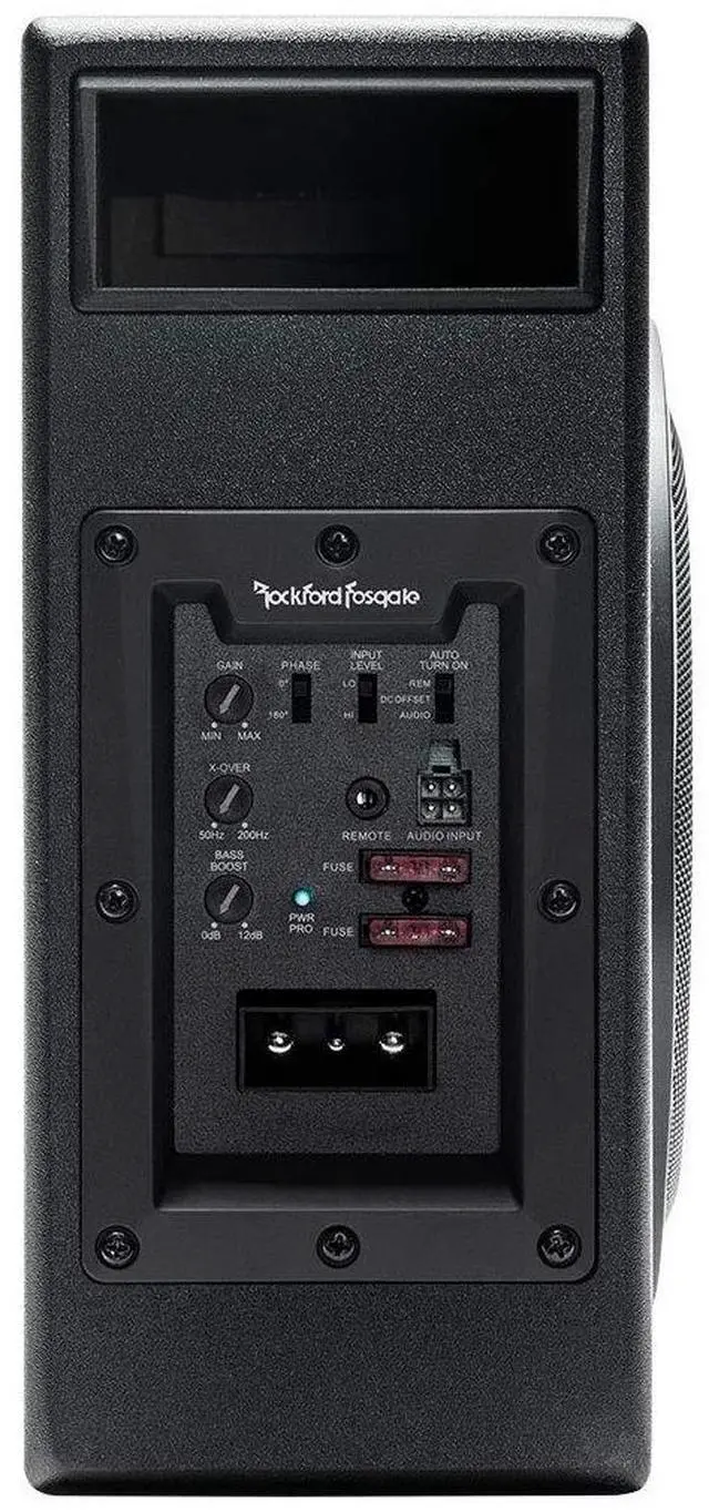 Dimensions: 11.4" x 17.6" x 5.6" ^^ Featuring an adjustable 12db/Octave low pass crossover, on board adjustable bass boost EQ, and on board phase switch ^^ The enclosure can be connected via speaker level inputs for connection to factory systems, or traditional line level inputs for aftermarket systems ^^ Famous Rockford Fosgate build quality with a full 1-year warranty