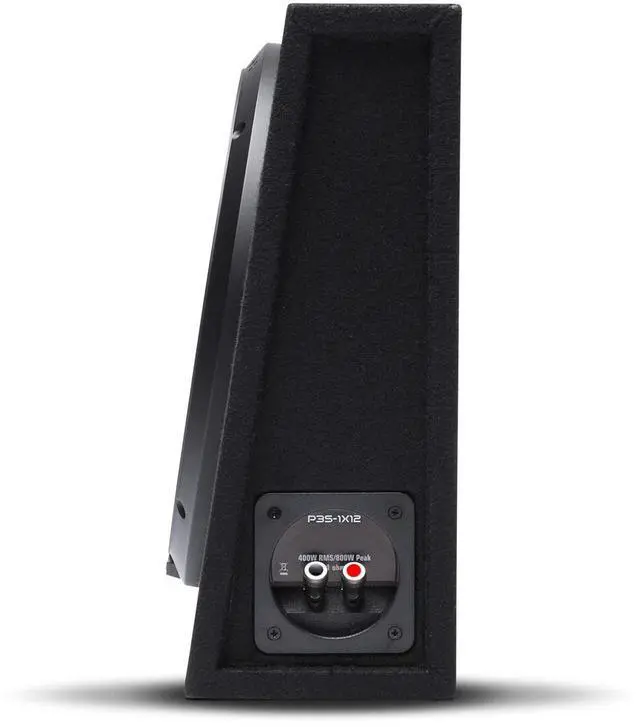 The P3S-1X12 is a single P3 12 DVC shallow subwoofer loaded in a sealed enclosure specifically designed for spaces where a traditional woofer cannot be used ^^ The P3S-1X12 sealed loaded enclosure is Internally wired to create a 1-Ohm amplifier load with power handling of 400 Watts RMS / 800 Watts Max ^^ Punch sealed truck box loaded enclosures are constructed with durable 5/8" MDF material with stitched Diamond-R logo and quick-release input terminals ^^ The P3S-1X12 sealed slim-line wedge design measures at 13.5 x 27.4 x D1 5.3 -