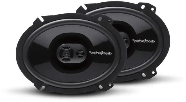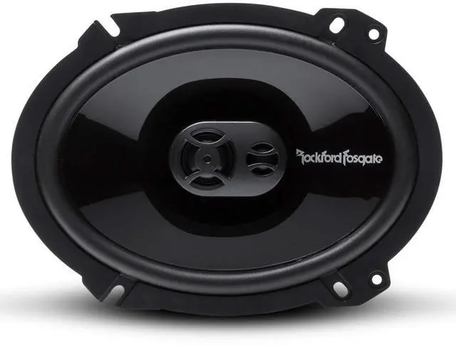 The Punch P1683 is an impressive 3-way full-range speaker designed for fanatics who need a high quality factory replacement in an easy to install package ^^ The P1683 6x8 4-Ohm black speakers come as a pair, have a power handling of 65 Watts RMS/130 Watts Max and include mounting hardware and OEM adapter plate ^^ Featuring a PEI dome tweeter with built-in crossover and injection molded mineral filled polypropylene cone with butyl rubber surround that provides high output and accurate frequency reproduction ^^ FlexFit basket design utilizes slots instead of single screw sized holes that allow for a slight adjustment of the speaker when aligning with OEM mounting holes for a better fit ^^ Famous Rockford Fosgate build quality with a full 1-year warranty