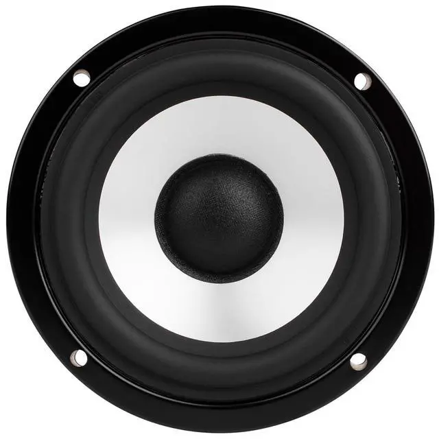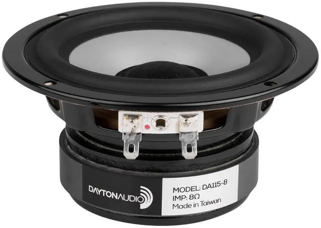 Dayton Audio DA115-8 4" Aluminum Cone Woofer The aluminum cone on this driver is extremely rigid yet well damped, making the bass and midbass region very clean and low in distortion. When used with a well-designed crossover, an extremely flat frequency response can be achieved that is clean well into the midrange region.