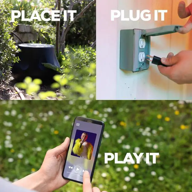 Built-in Bluetooth amplifier powers the subwoofer and two additional outdoor speakers (not included) - no external amp needed ^^ Weatherproof IP66-rated design is built to withstand rain, dust, and outdoor conditions ^^ 10" high-excursion woofer delivers deep, powerful bass in a compact enclosure ^^ Custom acoustic tuning provides rich, balanced low-end performance ^^ Full-range powered outputs eliminate the need for extra wiring or wall drilling ^^ Easy sound control with accessible volume and crossover adjustment knobs ^^ Ideal for outdoor spaces like patios, pools, gardens, and backyard setups