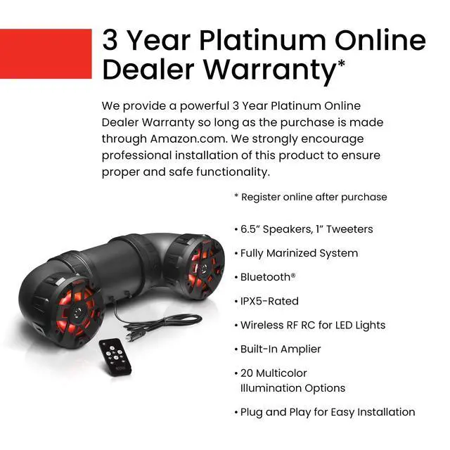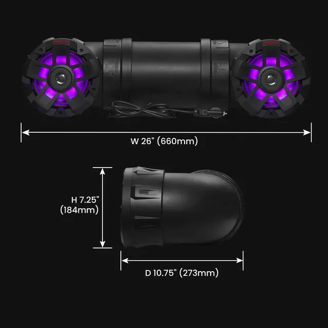 BOSS Audio Systems ATV65BRGB ATV Sound System - 6.5 Inch Speakers, Tweeters, IPX5 Weatherproof, Bluetooth, Built-in Amp, Multi-Color Illumination