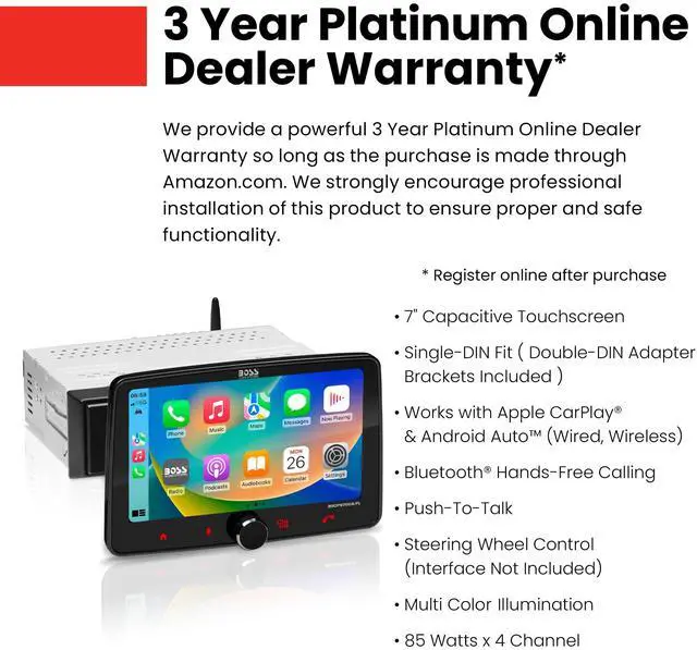 The steering wheel interface. Module sold separately (Metra ASWC-1). External Microphone. Outputs - Front, rear & subwoofer pre-amp ^^ BOSS Audio Systems provides a powerful 3-year platinum online dealer warranty so long as the purchase is made through. We strongly encourage professional installation of this product to ensure proper and safe functionality