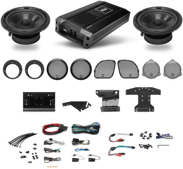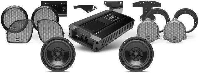 BOSS Audio Systems BHD3F Harley Davidson Front Speakers System Fits Select 1998+ Road Glide and Street Glide Motorcycles, 4 CH Amplifier Plus Mounting Plates, Weatherproof, 6.5 Inch, 300 Watts Pair