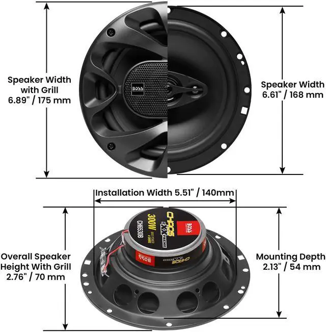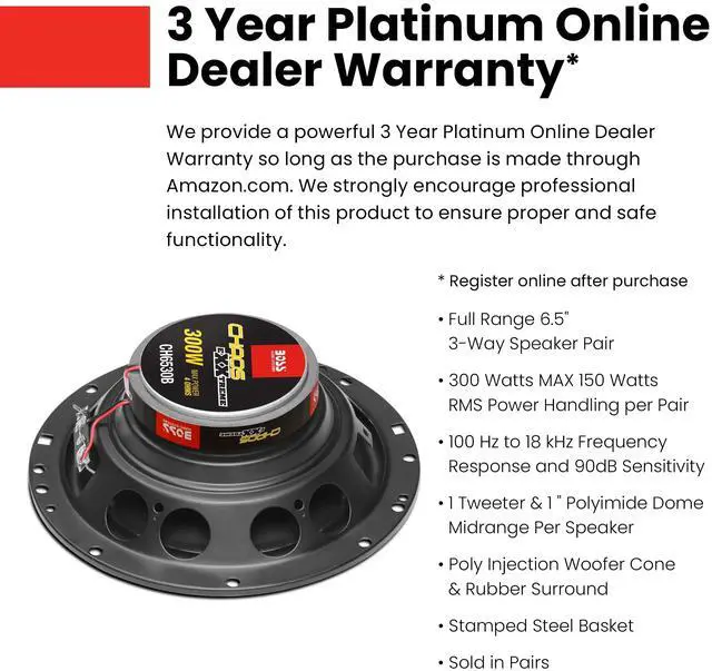 Sensitivity: 90 dB @ 1 watt/1 meter ^^ Poly Injection Cone, Rubber Surround, Stamped Basket, 1 Inch Voice Coil ^^ 0.50 inch Piezo Tweeter, 1 inch Polyimide Dome Midrange ^^ BOSS Audio Systems provides a powerful 3-year platinum online dealer warranty so long as the purchase is made through. We strongly encourage professional installation of this product to ensure proper and safe functionality