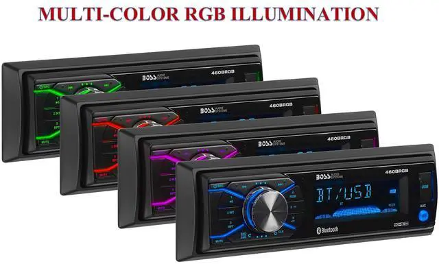 BOSS Audio Systems Elite Series 460BRGB Car Stereo - Single Din, Bluetooth, No CD DVD Player, AM/FM Radio Receiver, USB, Multicolor Illumination