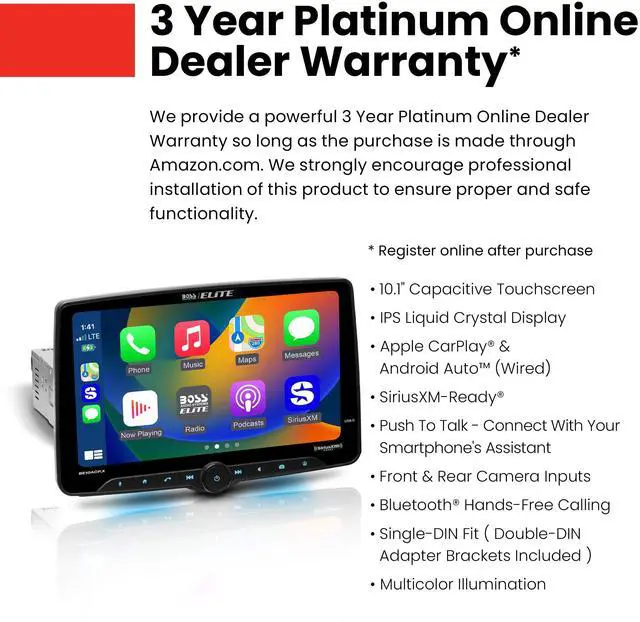 Aspect Ratio: 16:9, Resolution: 1024 x 600, 85 watts x 4 channels ^^ BOSS Audio Systems provides a powerful 3-year platinum online dealer warranty so long as the purchase is made through. We strongly encourage professional installation of this product to ensure proper and safe functionality