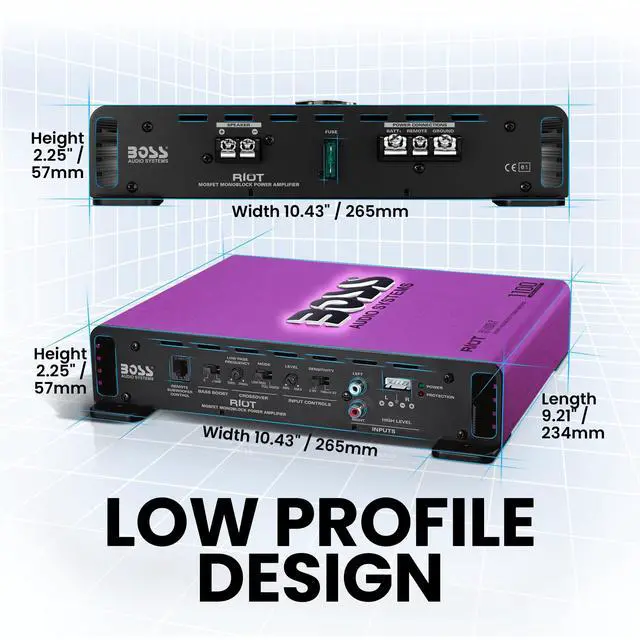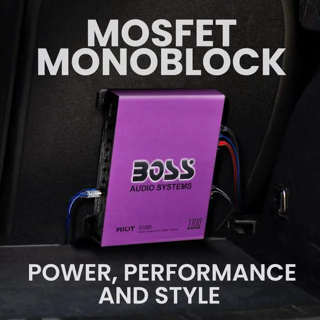 Boss Audio Systems R1100M-P Monoblock Car Amplifier - 1100 High Output, 2-8 Ohm Stable, Low/High Level Inputs, Low Pass Crossover, MOSFET Power Supply