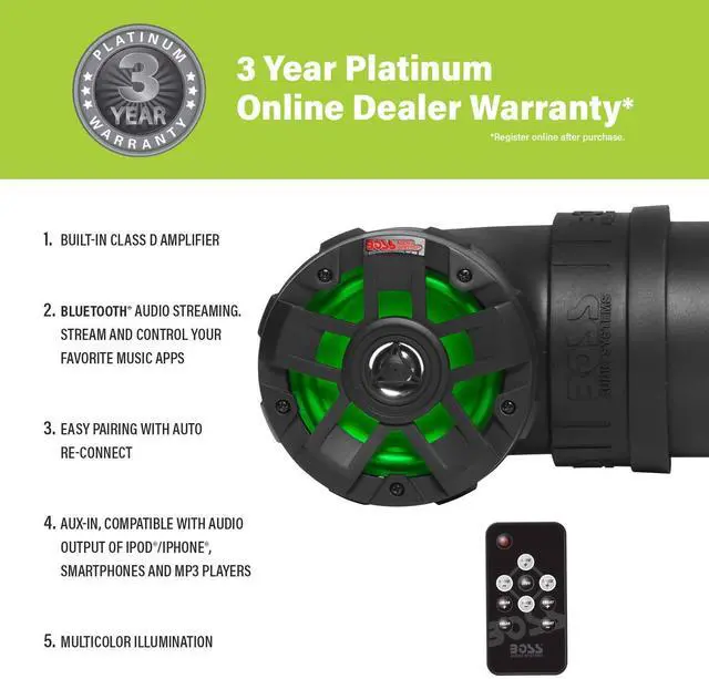 BOSS Audio provides a powerful 3-year Platinum Online Dealer Warranty so long as the purchase