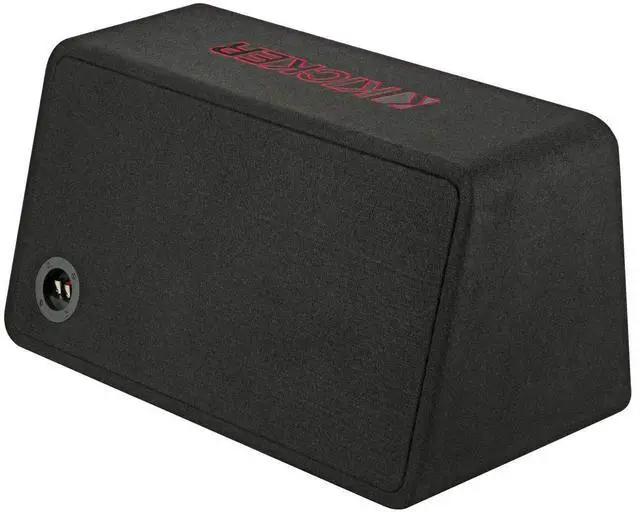 Features: Genuine L7R Subwoofer Included Front-Facing Port Design for loudest possible bass Angled Back for Excellent Fit Heavy Internal Bracing makes is last for years Single 2-Ohm Terminal for quick installation Easy to Install and Wire Thick Black Carpeting to handle bumps and scrapes Aesthetically pleasing Rounded Corners Embroidered KICKER Logo Thick MDF Construction *The compact L7R 12-inch Subwoofer Enclosure works best with 600 watts of recommended power. What's in the Box 1x Loaded Enclosure 1x 12-inch Subwoofer Mounting hardware (4 - black brackets 4 - #10 black wood screws x 20mm 8 - #8 black wood screws 20mm long) Owner's manual 2x Stickers