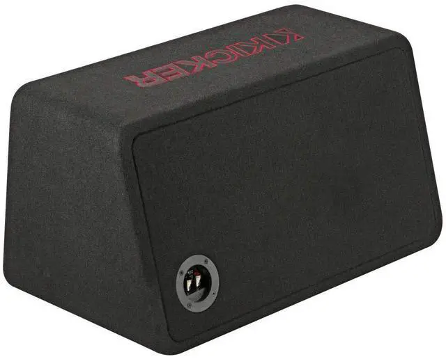 KICKERs square sub technology features patented ribbed corners, UniPlate solid pole piece and backplate, and injection-molded SoloKon cone system. You get up to 20% more volume compared to a round driver, so you move more air and get more bass! Combined with an optimized front-facing port, reinforced MDF construction, rounded corners and thick black carpet, you get big bass without the expense of a custom enclosure.