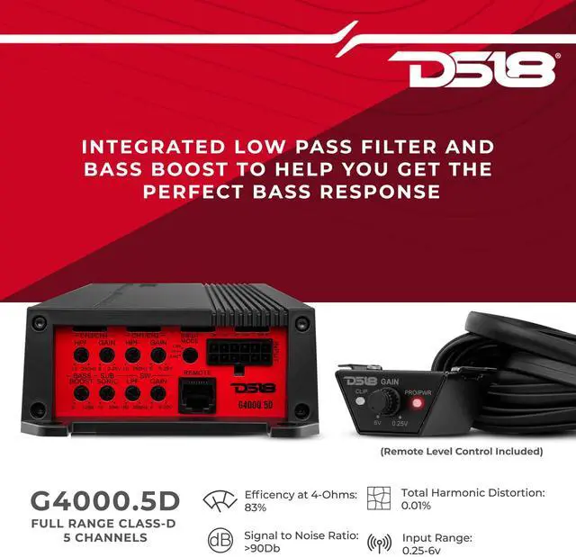 BASS KNOB INCLUDED - The G4000.5D amplifier comes with a remote bass knob included. Always have control over the bass levels depending on what genre music you're listening to