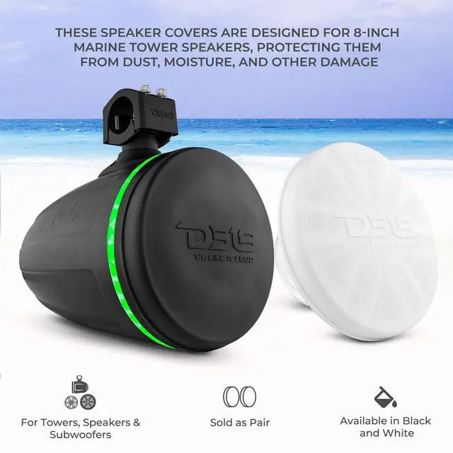 Ultimate Protection - Keep your 8-inch marine tower speakers safe from dust, moisture, and damage with DS18s CS-8 silicone covers, designed to preserve your speakers in pristine condition ^^ Durable Silicone Design - Crafted from high-quality silicone, these covers ensure a snug fit and long-lasting protection, safeguarding your sound investment during storage or downtime ^^ Stylish Options - Available in sleek black or crisp white, these covers not only protect but also enhance the aesthetic of your build ^^ All-Weather Reliability - Water-resistant construction makes these covers ideal for marine and outdoor environments, offering peace of mind in any conditions ^^ Convenient Set of Two - Each purchase includes a pair of covers, providing comprehensive protection for your speaker setup
