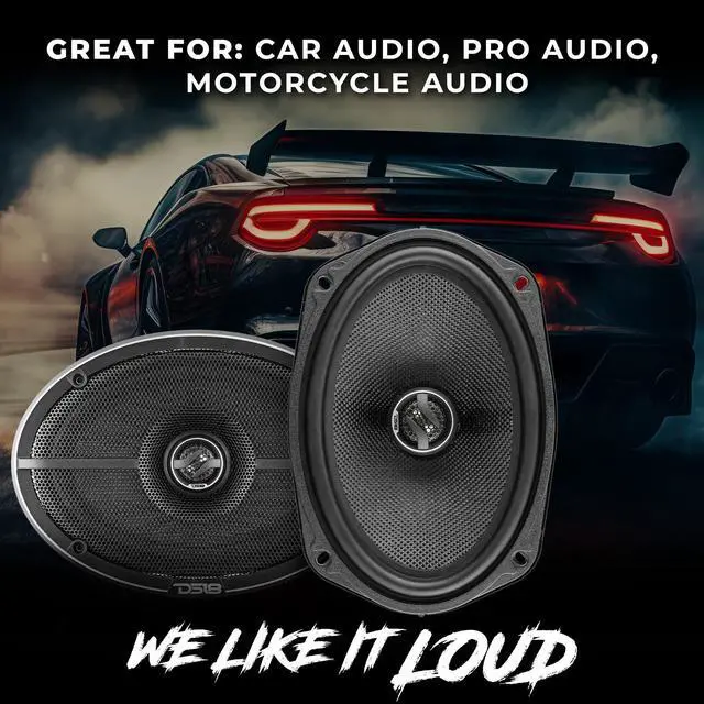 DS18 ELITE 6x9" 2-Way Coaxial Speakers with Kevlar Cone 360 Watts 4-OhmThe ZXI series is the go to DS18 line for great sounding audio that not only has very high volume, but also amazing sound quality for an amazing price. The ZXI 694 is 6x9 inch, 4 ohm coaxial speaker designed for mid tier audio enthusiasts to the extreme as they have an amazing range of frequencies and loudness. The 2 way design will ensure that you receive a full range of frequencies for an audio experience that you will truly remember. Nominal Diameter 6X9Nominal Impedance 4 ohmRMS Power Handling 120 WattsMAX Power Handling 360 WattsSensitivity (1w/1m) 92dBFrequency Response 31.5H z-20KHzRecommended HI Pass Crossover 50HzSpeaker