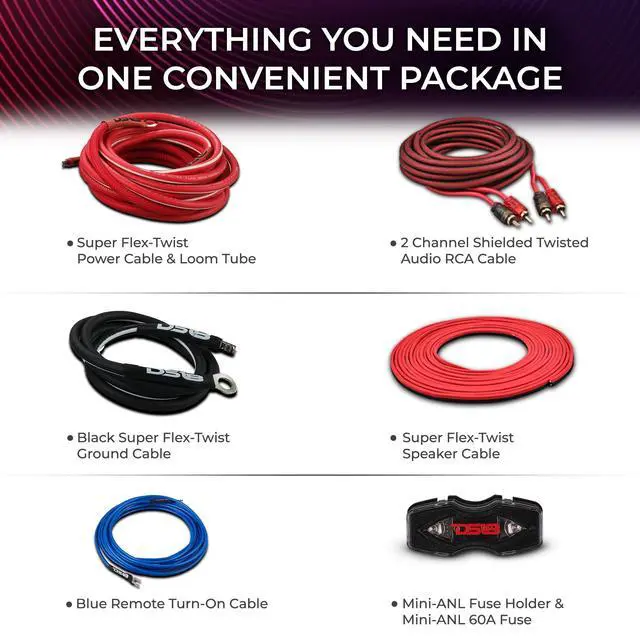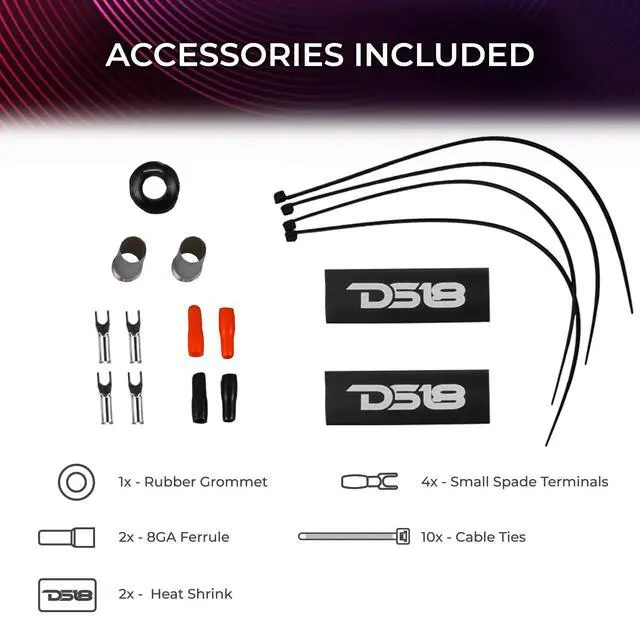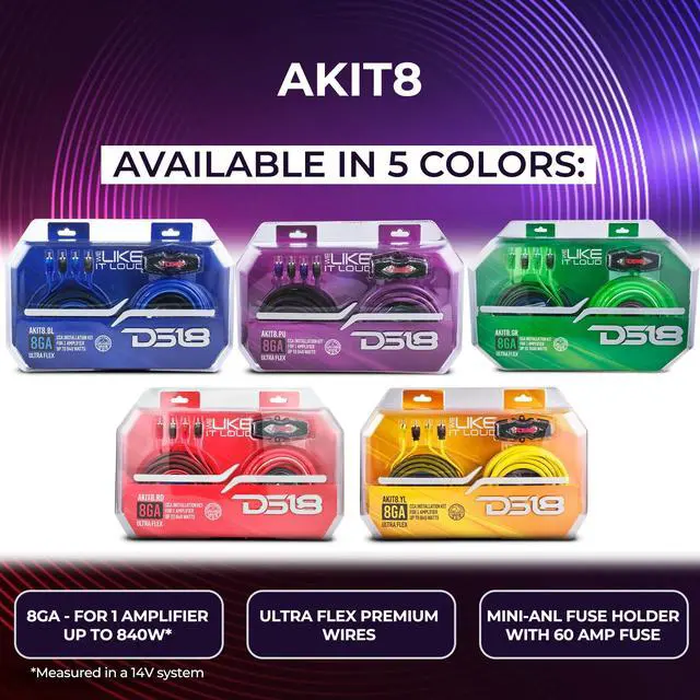 Power your system the right way with the DS18 AKIT8. RD! This all-in-one 8-gauge amplifier installation kit is engineered for clean, reliable power deliverysupporting up to 840 watts RMS. Featuring ultra-flexible CCA wiring, this kit includes everything you need for a professional-grade amp setup: power, ground, RCA, remote, and speaker wires, plus a durable 60A Mini-ANL fuse holder. Perfect for budget builds or daily systems that demand high-performance without the bulk of oversized wiring. Available in vibrant red to match your custom install.