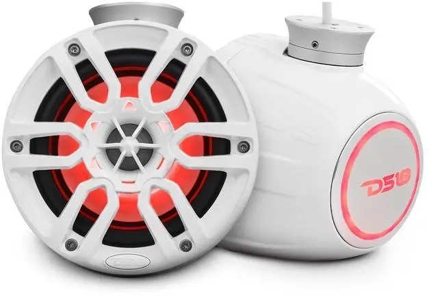 Engineered for all elements, these speakers/subwoofers are a great addition to your marine life and motorsports! The Hyrdo Series range in size from 6. 5", 8", and 10" with MAX Power up to 600W! Also equipped with an integrated RGB LED Lighting, high temp injection molded composite, ASA Grills with UV coating or a high gloss basket with UV coating. Compatible with DS18 LED-BTC or any other RF/BT/Wi-Fi Controller for Multi-Function RGB LED Lighting (Sold Separately) All speakers come with both clamps for easy installation.