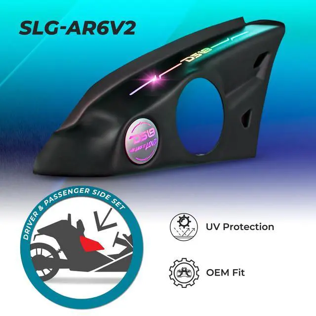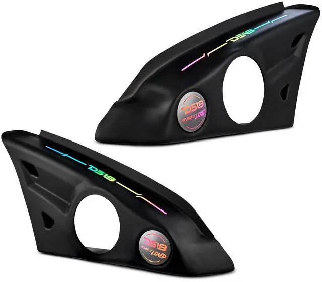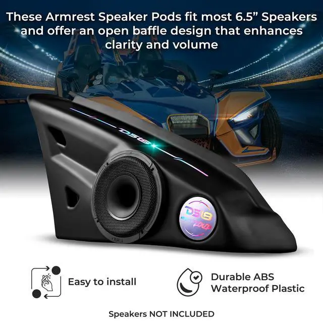 Unmatched Durability and Style - Crafted from ABS waterproof plastic with UV protection, these speaker pods are built to withstand the elements while maintaining a sleek black finish ^^ Eye-Catching LED Integration - The dreamy digital LEDs ensure your Slingshot stands out, adding a unique visual appeal to any setting (LED-BTC-DRM required) ^^ Seamless Installation - Designed for models from 2015 to the current year, these pods use OEM bolts and locations, making integration smooth and hassle-free ^^ Enhanced Audio Performance - Tailored to fit most 6.5" speakers, the open baffle design boosts sound clarity and volume for an unparalleled audio experience ^^ Perfect Speaker Compatibility - Optimized for DS18 speaker models, including water-resistant options like the PRO-CF 6.4SL and PRO-SM 6.2, ensuring excellent sound quality in any environment