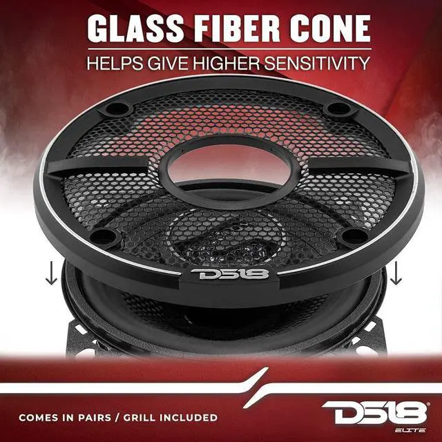 DS18 ELITE 4" 2-Way Coaxial Speakers with Kevlar Cone 150 Watts 4-Ohm The ZXI series is the go to DS18 line for great sounding audio that not only has very high volume, but also amazing sound quality for an amazing price. The ZXI 44 is 4 inch, 4 ohm coaxial speaker designed for mid tier audio enthusiasts to the extreme as they have an amazing range of frequencies and loudness. The 2 way design will ensure that you receive a full range of frequencies for an audio experience that you will truly remember. Nominal Diameter 4" Nominal Impedance 4 ohm RMS Power Handling 50 Watts MAX Power Handling 150 Watts Sensitivity (1w/1m) 88dB Frequency Response 80Hz-20Khz Recommended HI Pass Crossover 100Hz