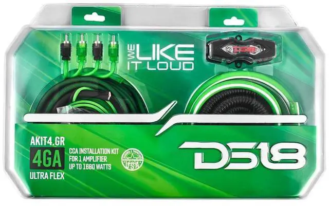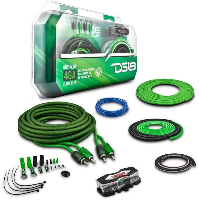 Complete Installation Kit - The DS18 AKIT4 provides everything you need for a seamless and professional amplifier installation, from high-quality cables to essential accessories, saving you time and effort ^^ High Power Handling - Capable of supporting amplifiers with up to 1680 watts of power, the AKIT4 ensures your audio system performs at its peak ^^ Superior Quality Components - Featuring true gauge wires, heavy-duty hardware, and shielded RCA cables, this kit guarantees longevity and exceptional sound quality ^^ Enhanced Safety - With a Mini-ANL Fuse Holder and a 120A fuse, the AKIT4 offers robust circuit protection to keep your audio system safe ^^ Flexible and Easy to Install - The 17 feet of super flex-twist power and speaker cables, along with various terminals and cable ties, make the installation process straightforward and adaptable to your setup