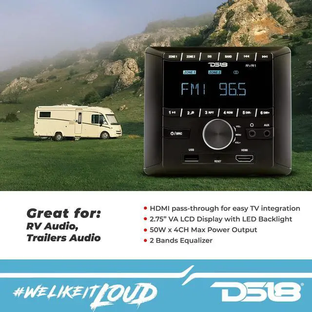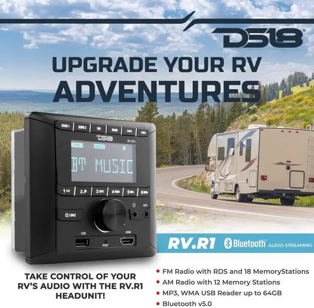 Audio Experience: The DS18 RV. R1 is custom-designed to enhance your road trips with premium sound and effortless control, tailored for recreational vehicles.