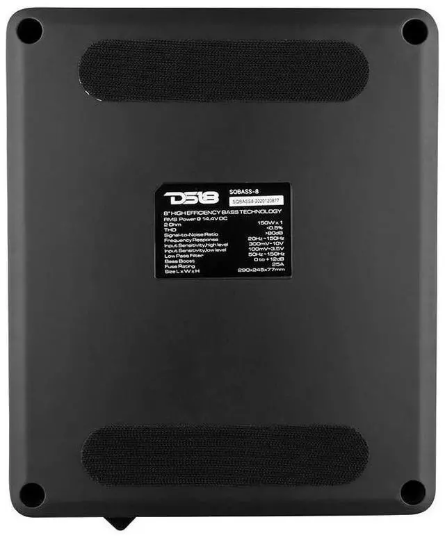 The DS18 SQBASS8 is a compact, high-efficiency amplified subwoofer engineered to deliver rich, controlled bass from the tightest installation spaces. Its slim 8-inch enclosure houses a digitally optimized 2-ohm subwoofer paired with a built-in amplifier, producing up to 600 watts of impactful low-frequency output with a smooth response from 20Hz to 150Hz. Designed to fit discreetly under seats or in other limited-space locations, the SQBASS8 enhances your sound system without compromising cabin room or audio quality. With the included remote bass knob, you can fine-tune your low-end performance directly from the driver's seat for a fully customizable listening experience.