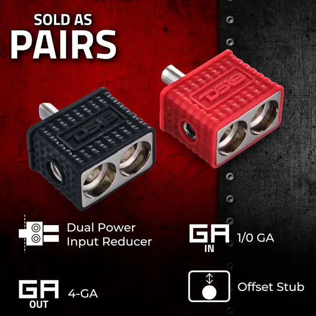 Crafted from highly conductive nickel-plated alloy, these reducers transform common power and ground input into powerful connections. The rubber surround and offset stub design not only isolates the reducers but also allows for easy removal guaranteeing compatibility with a wide range of builds. Sold in pairs (Both Positive and Negative Inputs), these reducers are guaranteed to optimize your car audio systems installation and performance effortlessly.