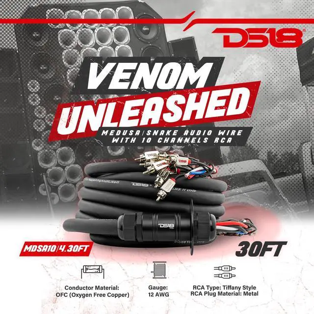 UNPRECEDENTED SOUND QUALITY - DS18's MDSA10/ 4.30FT Medusa Wire revolutionizes your car audio system, delivering an unparalleled listening experience with its impressive specifications and cutting-edge technology ^^ UNMATCHED VERSATILITY AND MOBILITY - With its generous 30ft length, this multicore audio wire provides extensive range and flexibility, allowing you to position your equalizers and crossovers wherever you desire within your vehicle. Say goodbye to limitations and embrace the freedom to create a sound system that defies boundaries ^^ IMPECCABLE SIGNAL TRANSMISSION - The 10 channels of RCA audio ensure pristine signal transmission, preserving the integrity of your audio signals from the source to your equalizers and crossovers.