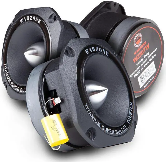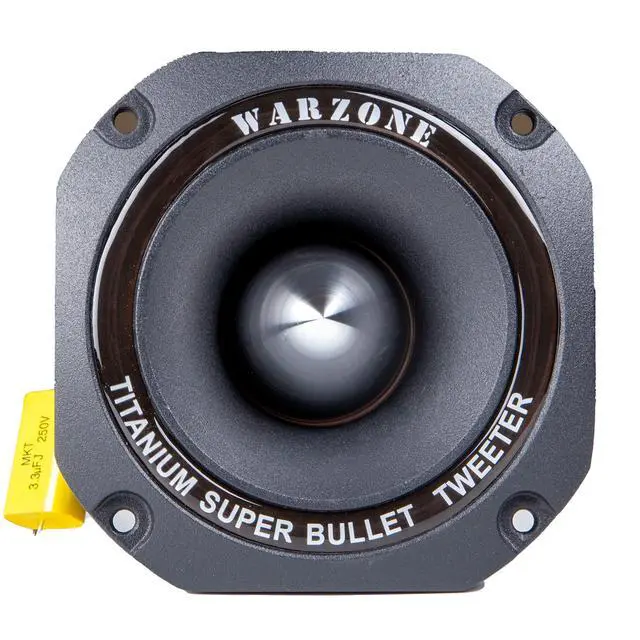 TAKE YOUR SYSTEM TO THE NEXT LEVEL Get the most out of your system by upgrading to a super tweeter that gives you everything you're missing from your stock stereo Discover what a high-end tweeter can do for you. 1 in. SUPER BULLET TWEETERS Specifically designed Bullet dust cover to protect the voice coil and ensure that the highs cut through road noise and big bass.