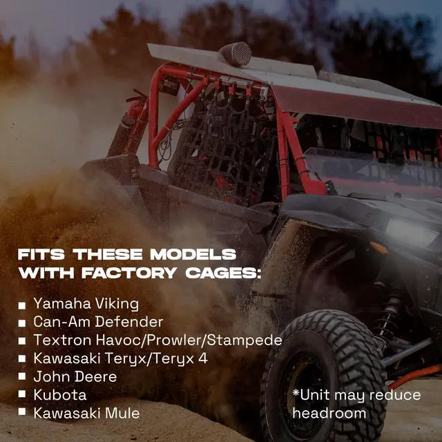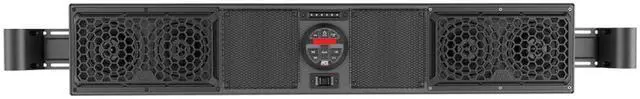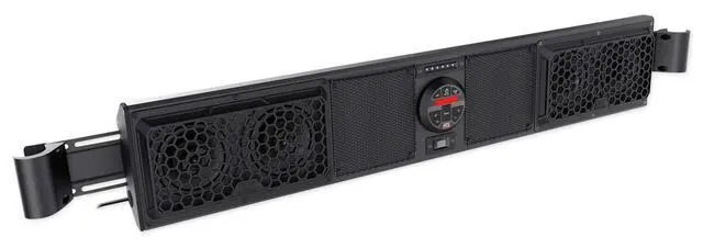 Elevate your off-road experiences with the MTX Overhead Bluetooth UTV Sound System. Designed for mounting on roll cages with diameters between 1.75" and 2" and inside measurements from 49.25" to 56.0", this all-weather speaker system ensures unbeatable high-quality audio for riders. Featuring four 6 1/2-inch coaxial speakers and a robust 280-watt integrated power amplifier, it delivers crystal-clear sound even in challenging conditions. Versatility meets simplicity with 3 input options: Bluetooth 4.2, 3.5 -millimeter auxiliary, and USB. With a single harness for +12-volt, ground, and ignition wires, installation is a breeze. Expand your sound further with the RCA output, which allows connection to external amplifiers for additional speakers or subwoofers. Experience more than just audio. This Bluetooth UTV speaker bar includes an integrated digital AM/FM radio with US and European frequency bands. It also has a digital clock, a switch-controlled LED map light, and convenient storage cargo nets for added functionality.