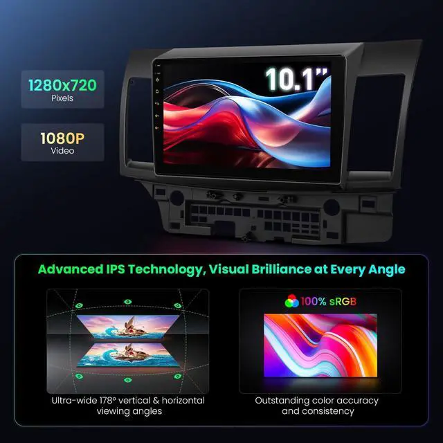 Features: 10.1 with 1280*720 High DefinitionUpgrades your driving experience with supersized entertainmentIPS Panel, 178Viewing AngleEnjoy viewing on a big screen stereo without eye fatigue. Built-in DSP