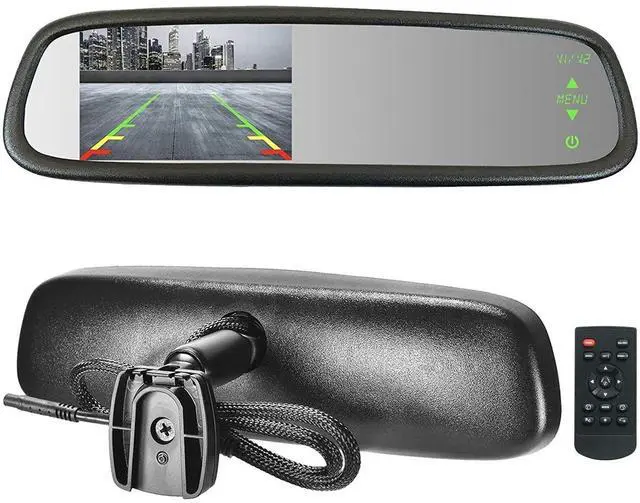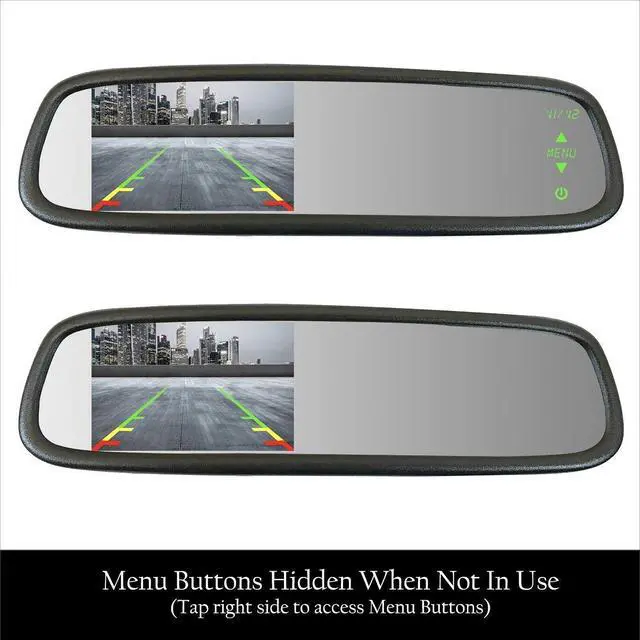 ^^ LCD SCREEN: The mirror is 10.5", with a 4.3" TFT ultra high brightness LCD screen that automatically turns on to display the rear view image when your vehicle is put in reverse. It has an LCD display sensor that adjusts the screen's brightness to the ambient light so it's easier to see, brighter when it's light outside and dimmer when it's dark out. There are also adjustable guidelines for added safety, which can be adjusted using the included remote or by using the mirror's touch screen menu.