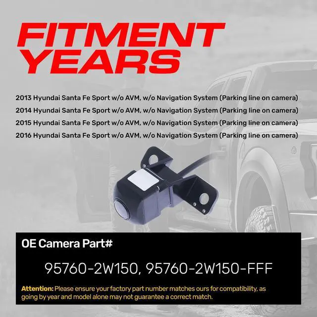 **ATTENTION: Before purchasing, make sure to verify that your part number is an EXACT MATCH to this part number* ^^ [For use with]: Hyundai Santa Fe Sport (2013 2014 2015 2016) w/o AVM, w/o Navigation System (Parking line on camera) OE Part # 95760-2W150 (957602W150), 95760-2W150-FFF
